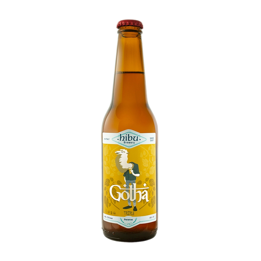 GothaBirra strutturata ed avvolgente, dal colore chiaro, dal sapore di malto e caramello, ben sostenuti da un piacevole amaro. 33 cl. ALC 7.7% HIBU'